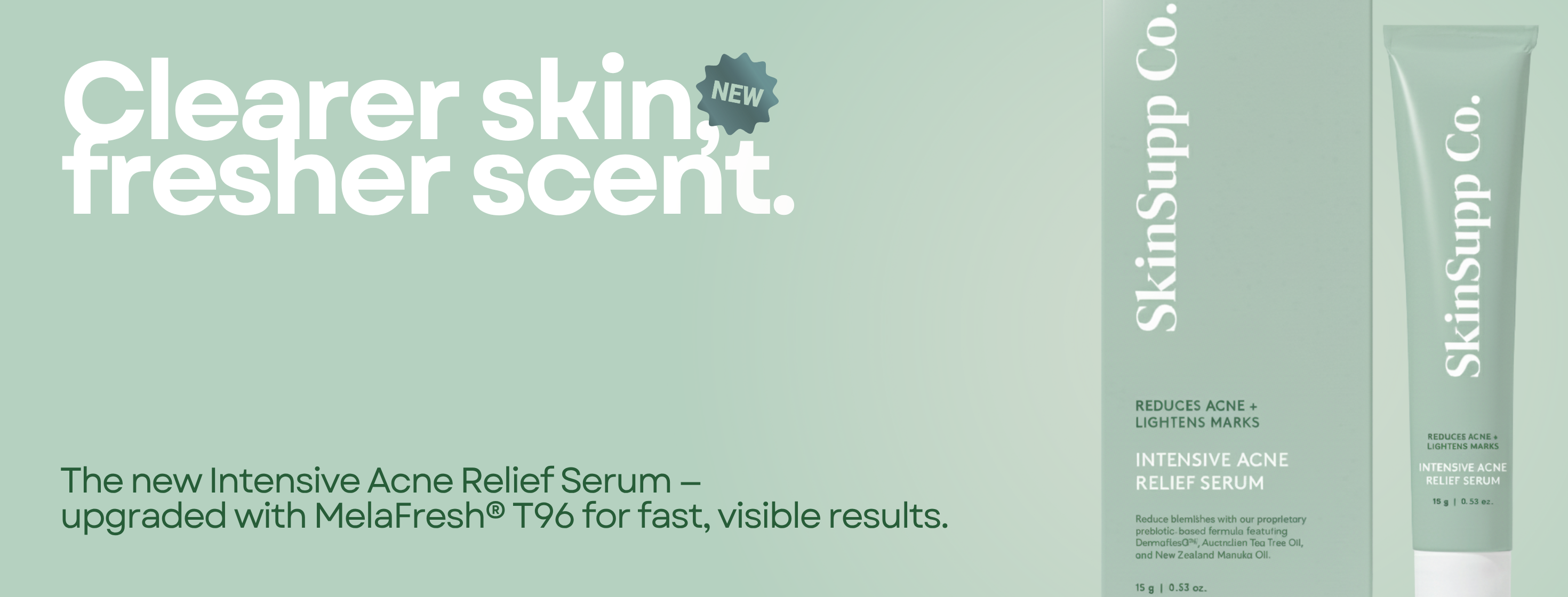 Now with MelaFresh® T96 — Stronger Power, Softer Scent.This advanced 3-in-1 acne serum is clinically formulated to reduce breakouts, fade acne marks, and strengthen the skin barrier — all without dryness or irritation.